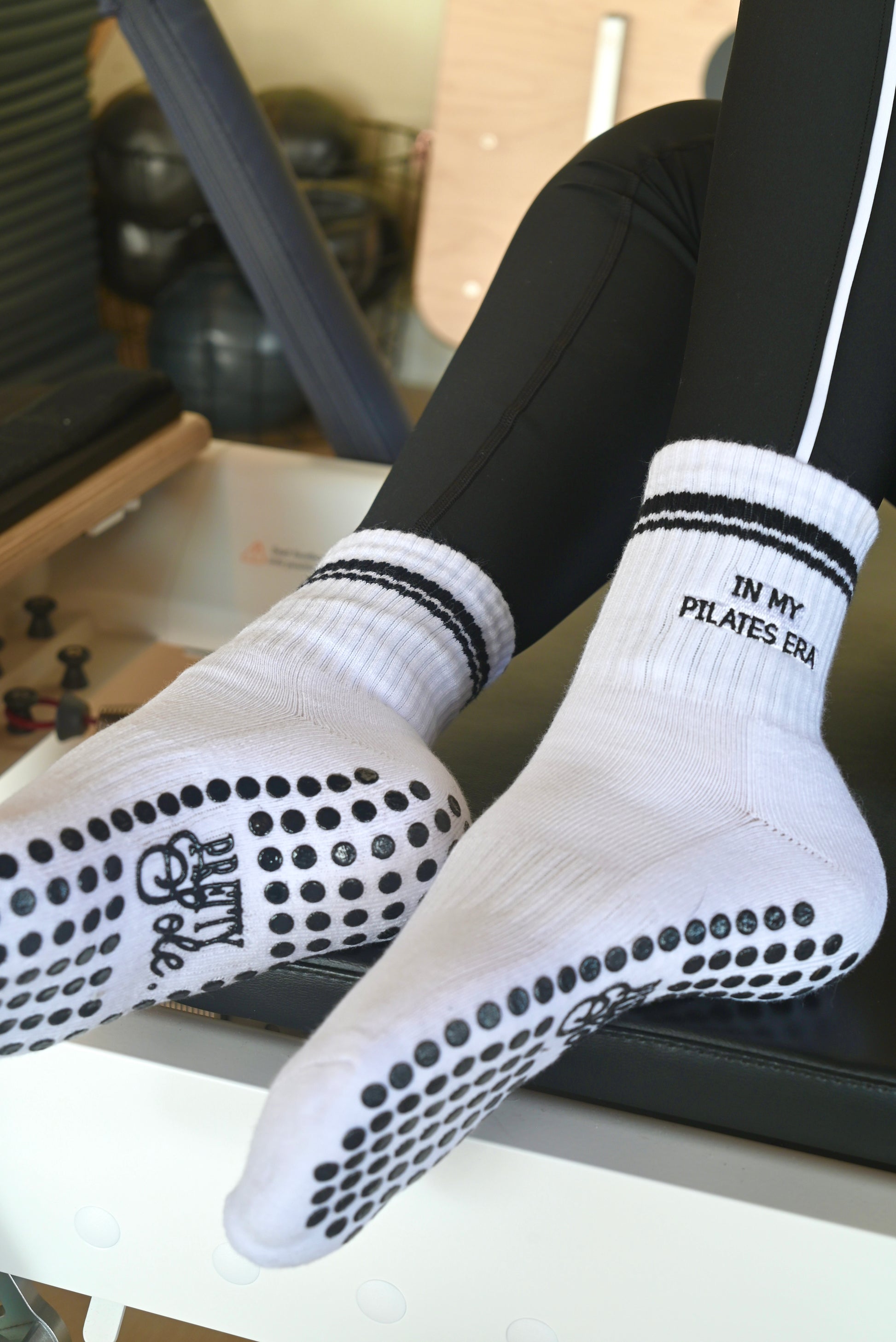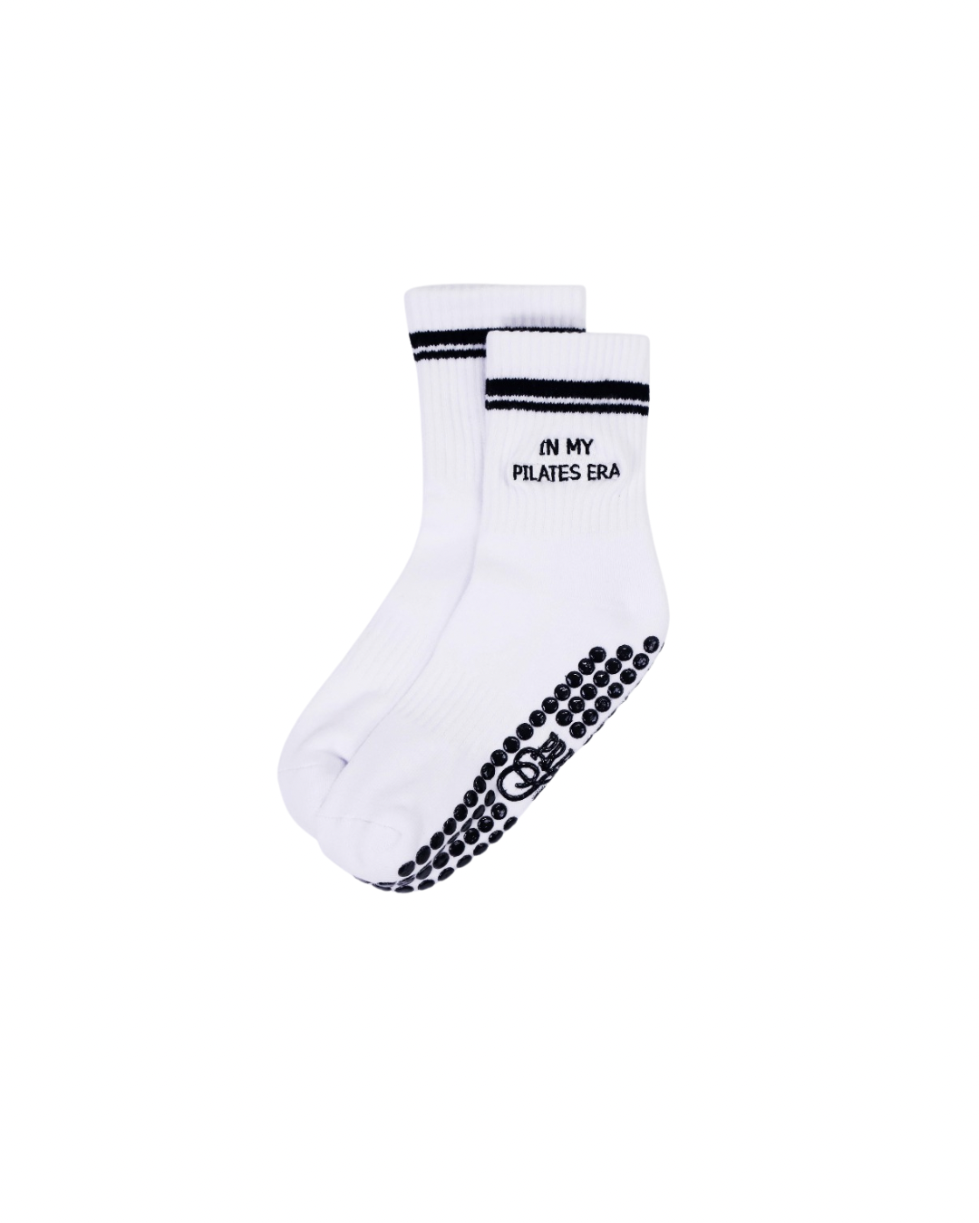 Enter your pilates era in style with our Pilates Girl Era grip socks! These ultra-cute socks feature circle-shaped non-slip grips to keep you grounded while you move, stretch, and slay your workouts. With a comfy fit and "IN MY PILATES ERA" embroidered at the cuff, they are the perfect blend of sweet and strong — just like you.
