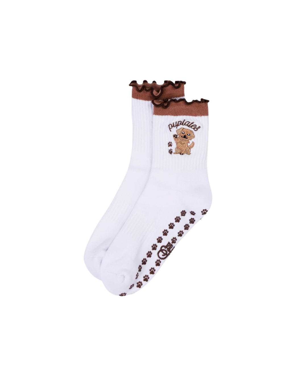 Bring some puppy love to your Pilates! With an adorable pup design, paw-print grips, "puplates" and frilly trim, these socks are made to keep you cozy, steady, and smiling through every stretch and squat. The cutest workout partner you’ll ever have 🐾✨